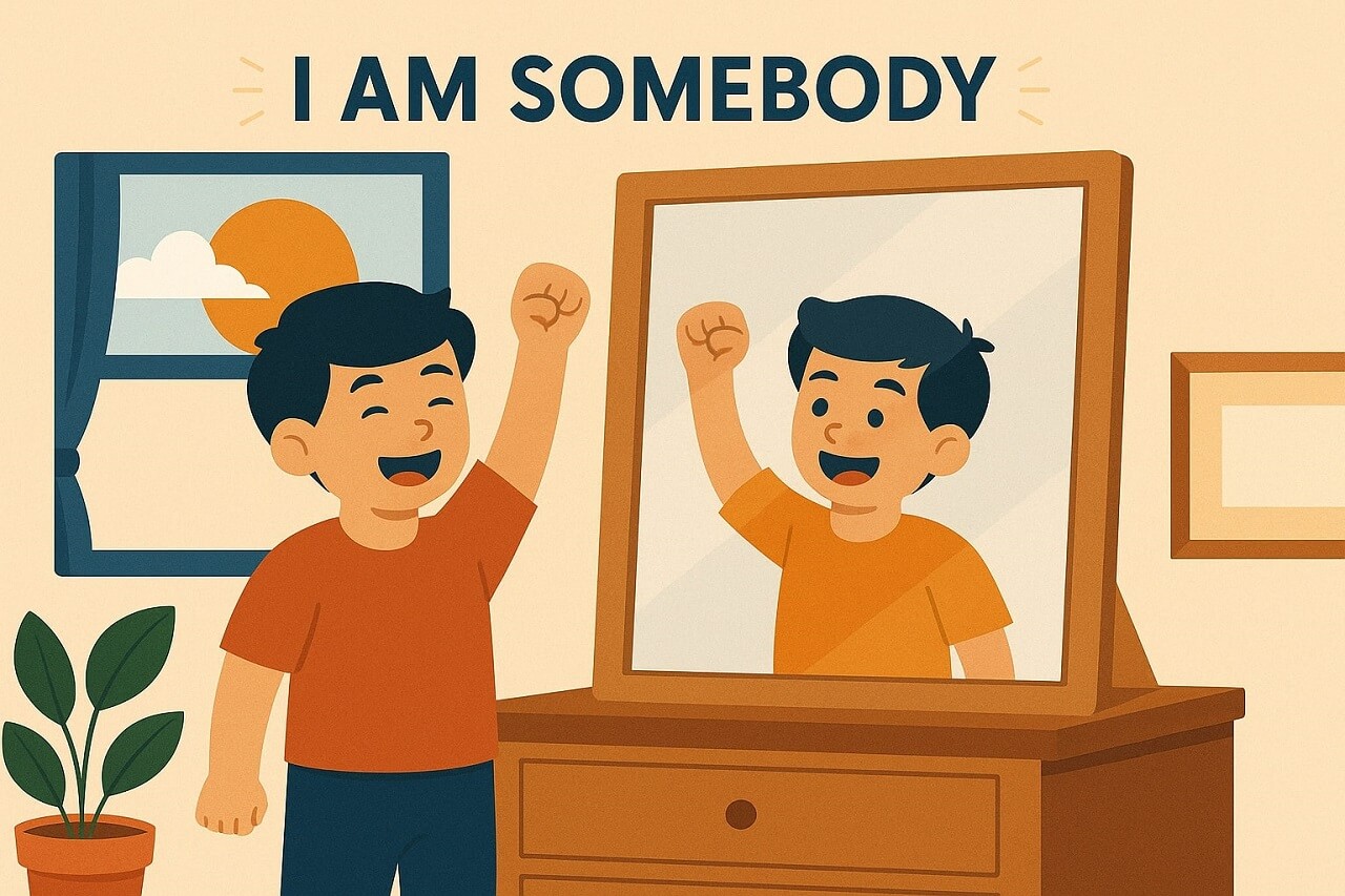 A strong morning affirmation gives them that voice in advance. It does not need to be long or complex. The phrase “I Am Somebody” holds all the meaning required. It reminds them that their presence matters. Their thoughts matter. Their mistakes do not erase them. Their wins do not define them.